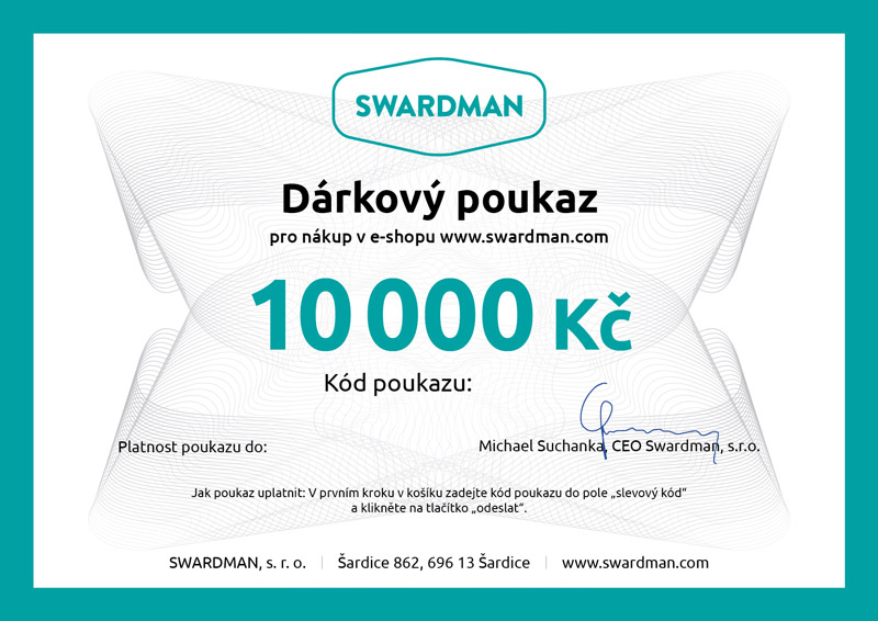 Dárkový poukaz v hodnotě 10 000 Kč na nákup zboží z nabídky internetového obchodu www.swardman.com