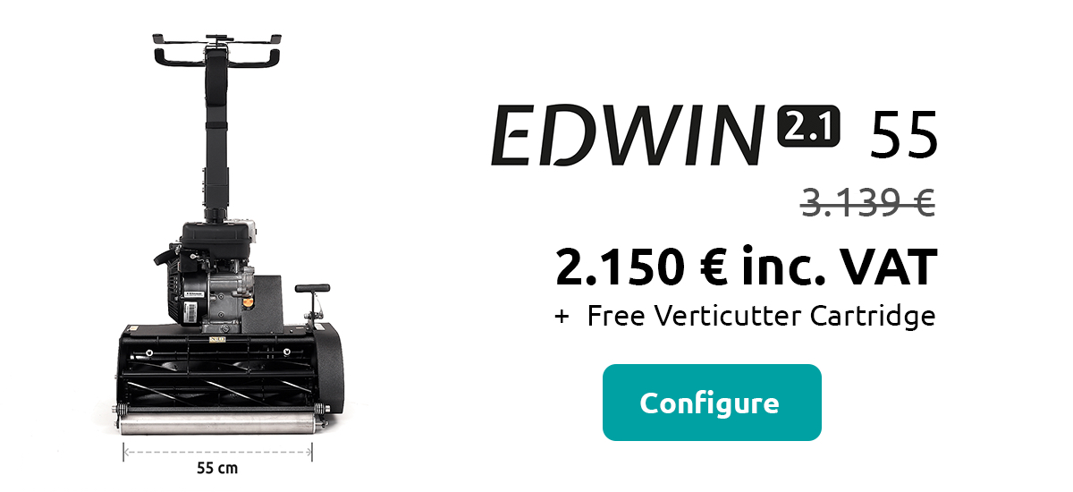 The Swardman Edwin 2.1 models (45 and 55) are now available at an unbeatable price – and as a bonus, you’ll receive a verticutting cartridge free of charge. You’ll appreciate it right at the beginning of the season, as verticutting is one of the key pillars of proper lawn care in spring.