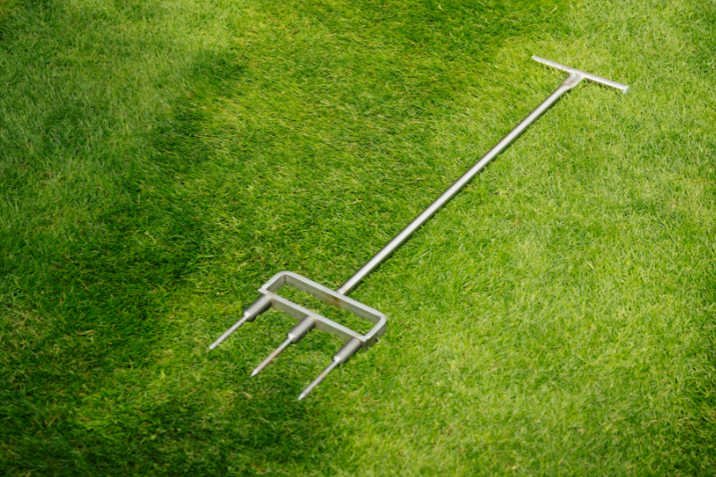 Widły do aeracji z pełnymi zębami są świetnym narzędziem do napowietrzania trawnika i poprawy dostępu powietrza i wody do warstwy korzeniowej.